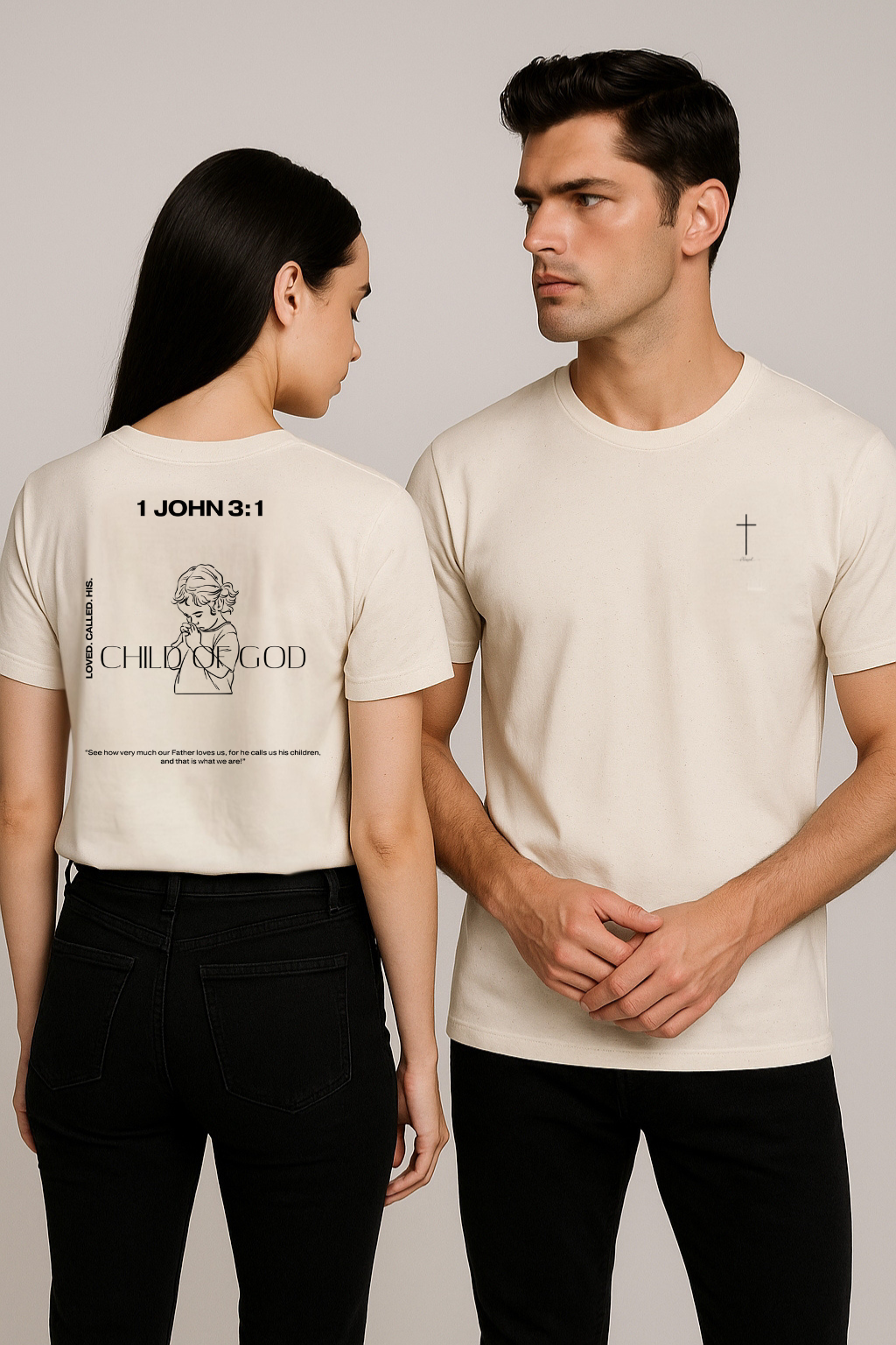 Celebrate your identity in Christ with the “Child of God” T-shirt. Inspired by 1 John 3:1 (NLT): “See how very much our Father loves us, for he calls us his children, and that is what we are!”, this shirt is a beautiful reminder that you are loved, chosen, and deeply valued by God.